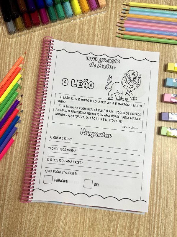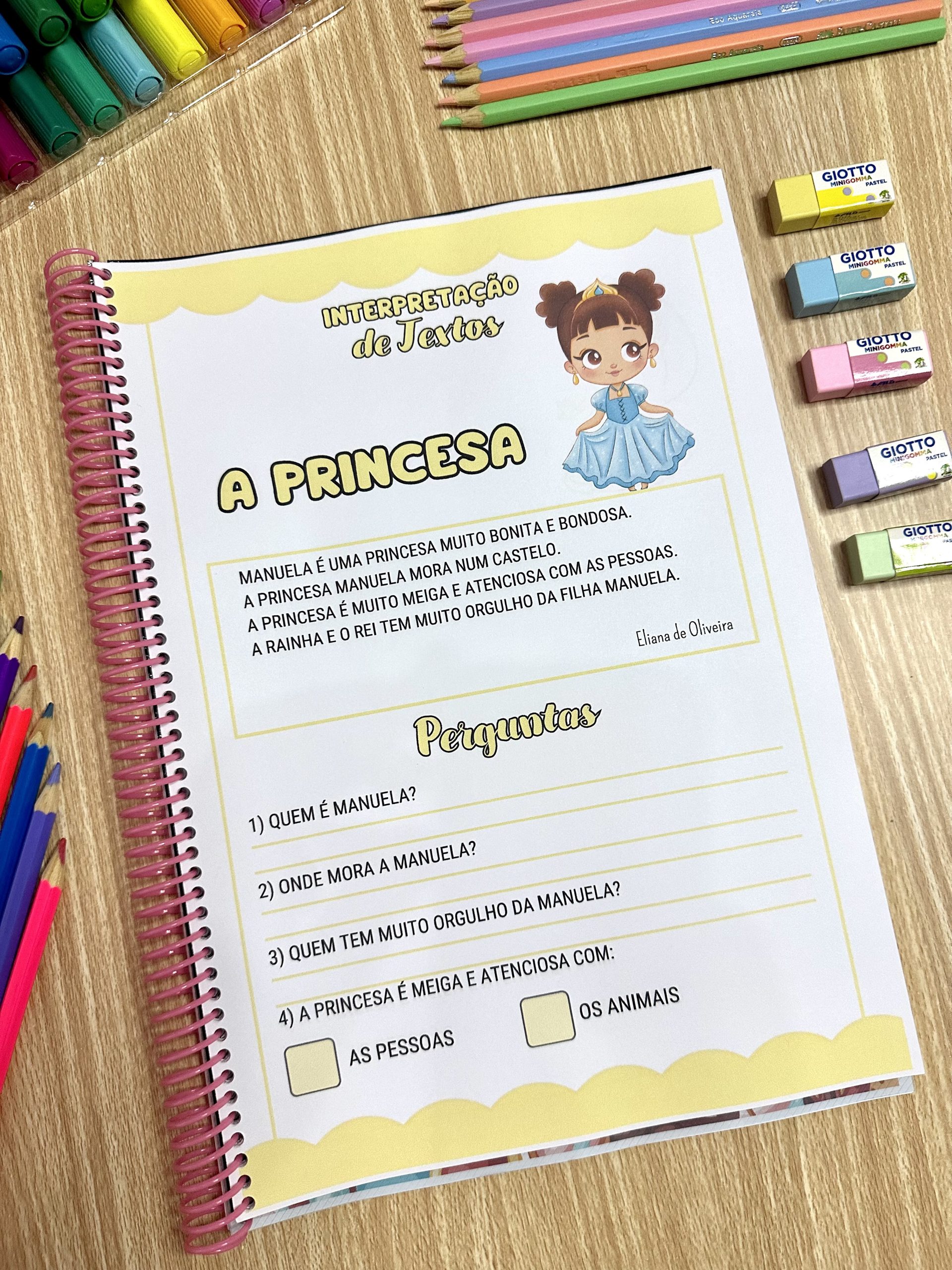 Cada texto é acompanhado de questões de interpretação para ajudar as crianças a desenvolver suas habilidades de leitura e compreensão.