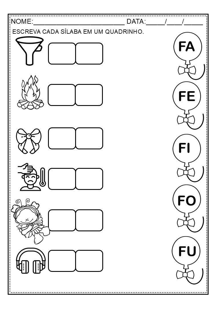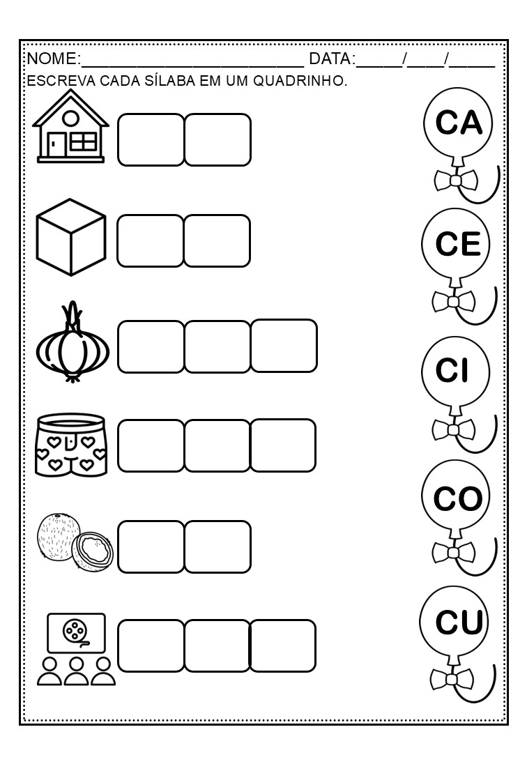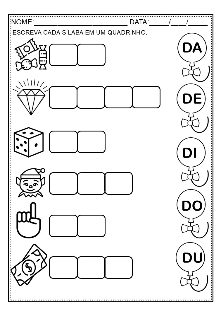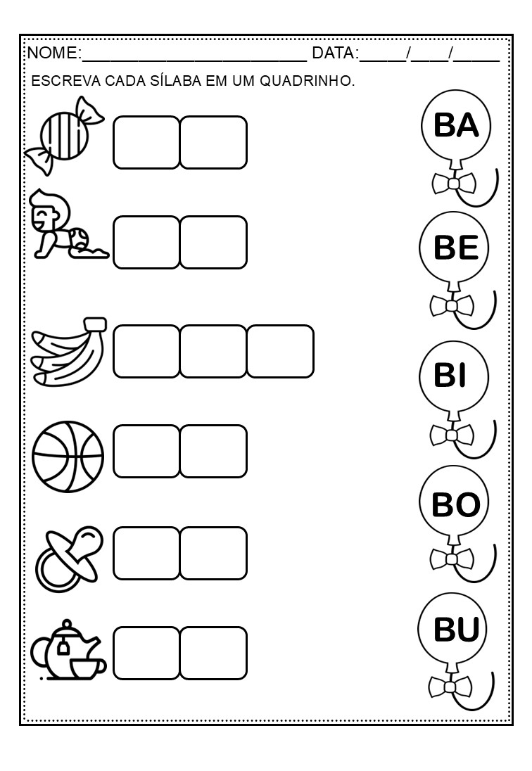 Segmentação Silábica: Ao dividir as palavras em sílabas e escrevê-las em quadrinhos, o aluno pratica a segmentação silábica, uma habilidade fundamental para a leitura e escrita, pois ajuda a reconhecer padrões de som e letra.