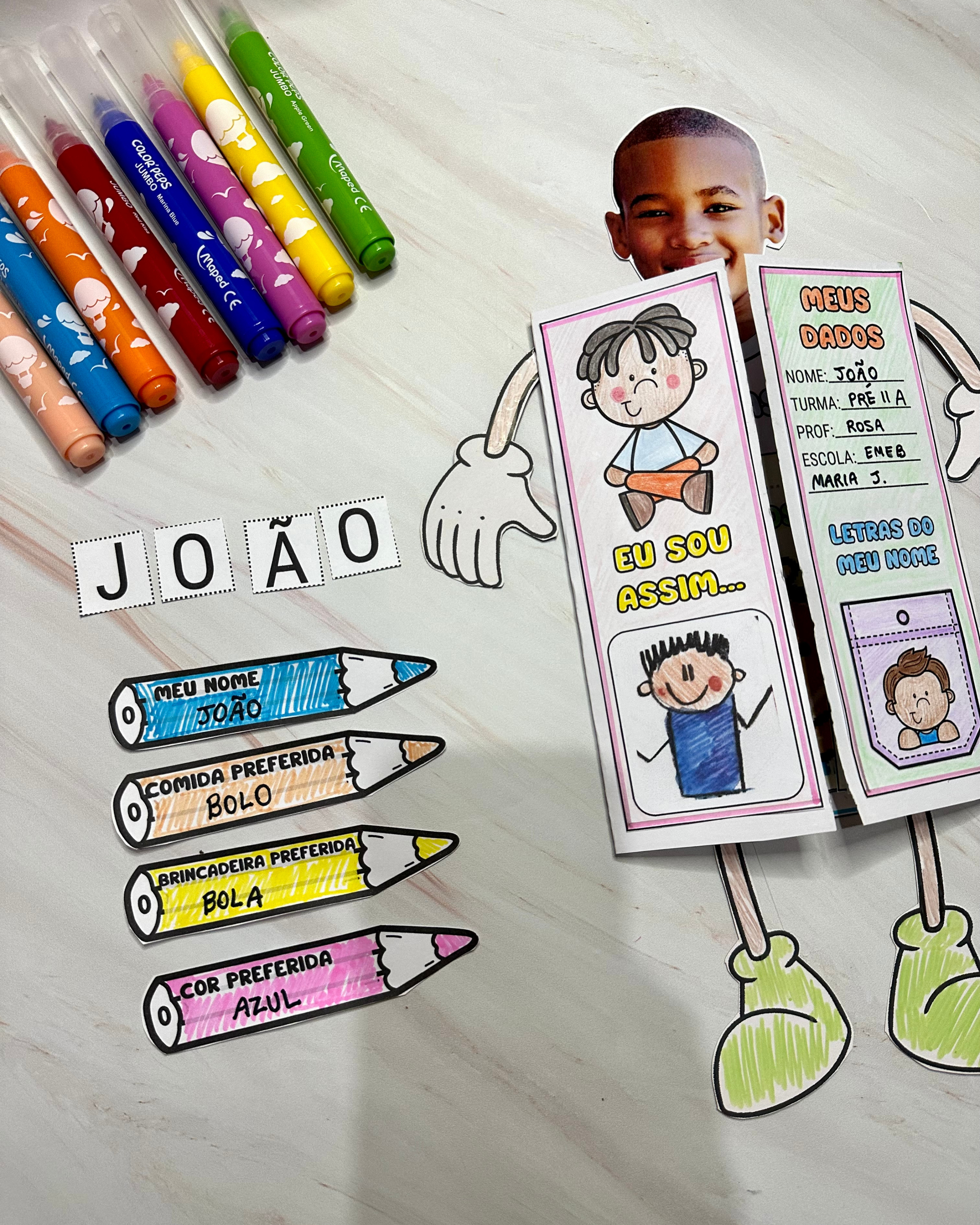 Atividade interativa Eu sou assim, para trabalhar o tema “Identidade” com crianças da Educação Infantil. Essa proposta estimula a criança a fazer uma reflexão sobre quem ela é, suas características, gostos e preferências, possibilitando a construção de uma autoimagem positiva, fortalecendo sua autoestima e confiança.